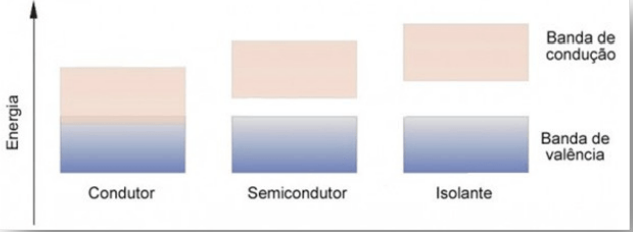 Os semicondutores possuem a banda de valência totalmente preenchida e a banda de condução totalmente vazia a temperaturas muito baixas. A separação entre as duas bandas de energia, chamada de gap de energia, é em torno de 1 eV.