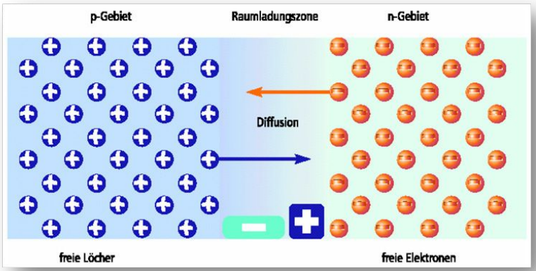 Se a Junção P-N for exposta à radiação solar, os fótons com energia superior ao gap liberam mais buracos-elétrons livres que criam uma corrente elétrica na área da junção.