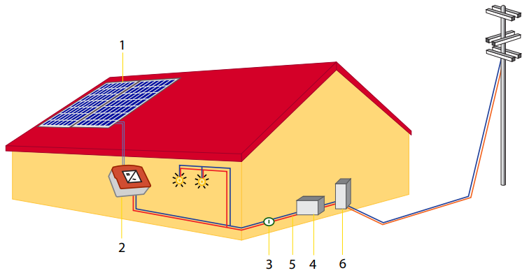 6 O excedente volta para a rede elétrica através do medidor fazendo-o rodar ao contrario,reduzindo a tarifa de energia elétrica.