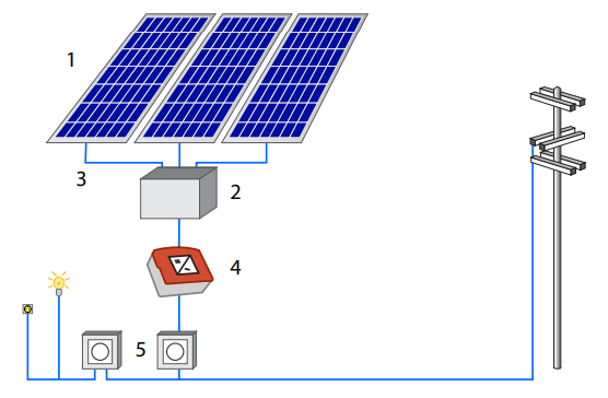 Os sistemas fotovoltaicos conectados à rede fornecem energia para as redes de distribuição. Todo o potencial gerado é rapidamente escoado para a rede, que age como uma carga, absorvendo a energia.