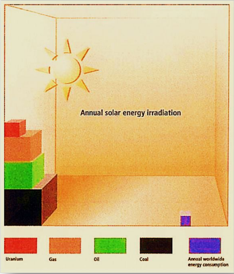 A Energia irradiada pelo sol em um segundo é muito maior que a energia consumida pela humanidade desde o seu aparecimento na face da Terra, até os dias de hoje. Toda essa energia, claro, não chega até a Terra.