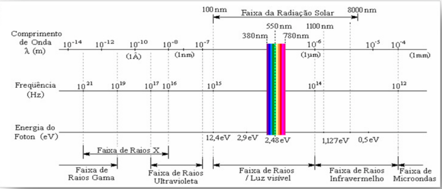 A radiação solar é radiação eletromagnética que tem distribuição espectral conforme a figura abaixo: