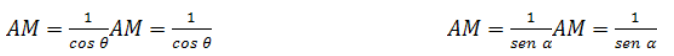 A relação entre o coeficiente AM e a altura solar e ângulo zenital é a seguinte: