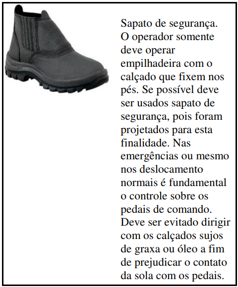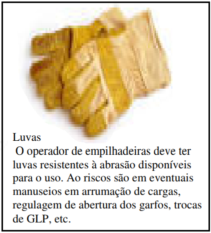 O operador de empilhadeira, durante sua jornada de trabalho, opera maquinas pesadas e transportam materiais e produtos de todos os tipos. Sua principal prioridade é a segurança nas operações. Uma operação segura evita danos na empilhadeira exige do operador conhecimento da máquina que opera dos acessórios de movimentação, do produto a ser transportado e do ambiente de trabalho, assim como, habilidade no controle da empilhadeira nos deslocamento e no armazenamento das cargas.