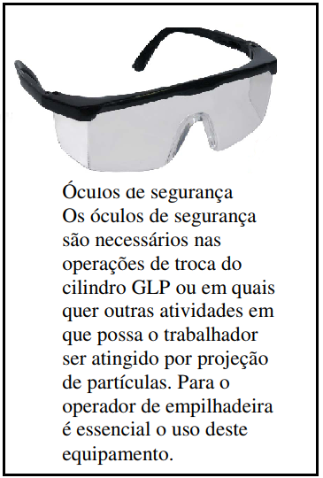 Os seguintes equipamentos de proteção individual são necessários para os operadores de empilhadeiras.
