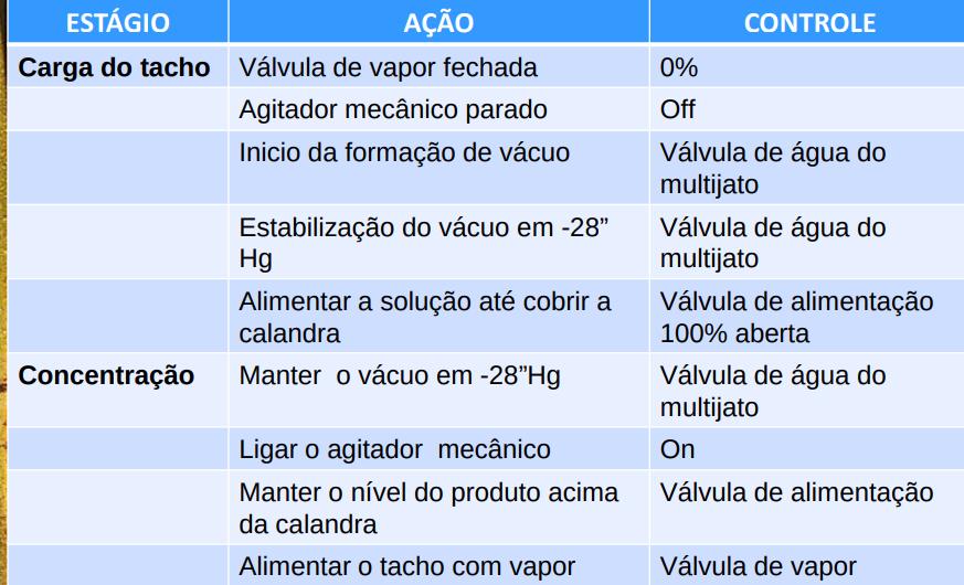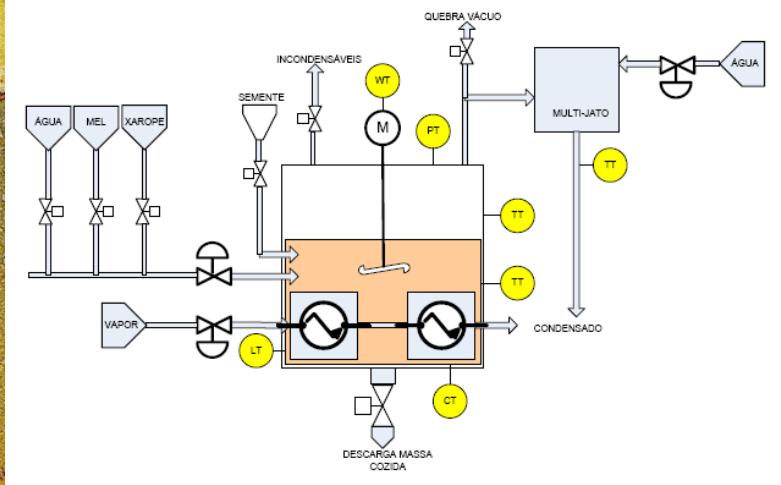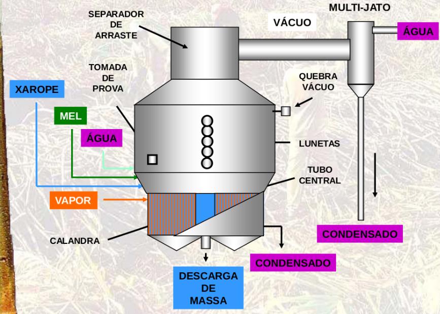 É o processo de cristalização do açúcar por evaporação de água dentro de um vaso de pressão desenhado para manipular materiais densos e viçosos.