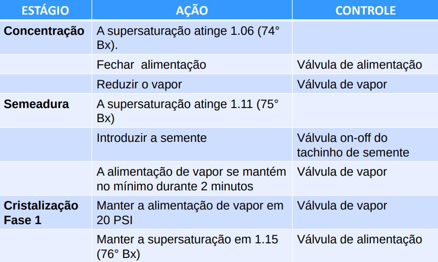 É o processo de transferência de massa entre a solução açucarada e os cristais de sacarose, que acontece quando se excede o ponto crítico da foça de atração molecular e as moléculas mudam para o estado sólido na sua forma cristalina.