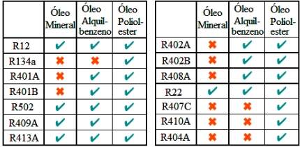 São compatíveis com óleo mineral, óleo alquilbenzeno e com os materiais existentes. Obs: somente na aplicação do R-407C, deve ser trocado o óleo mineral por óleo Poliolester;