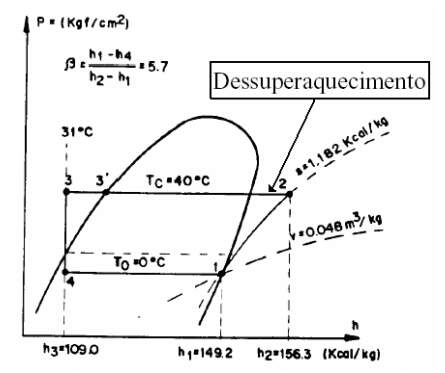 O gás, quando é descarregado do compressor, está a alta temperatura. O processo inicial, então, consiste em abaixar esta temperatura, retirando calor sensível do refrigerante, ainda no estado gasoso, até ele atingir a temperatura de condensação, ver figura abaixo.