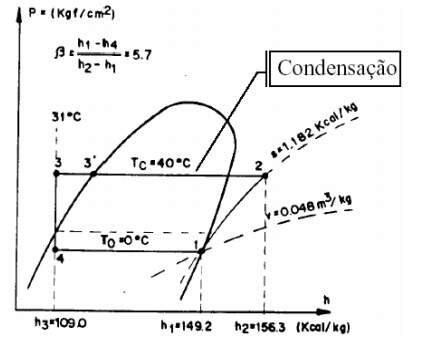 Quando o gás atinge a temperatura de condensação, ele começa um processo de mudança de estado. Neste processo retira-se calor latente do refrigerante, isto é, a temperatura deste mantém-se constante durante todo o processo, ver figura abaixo.