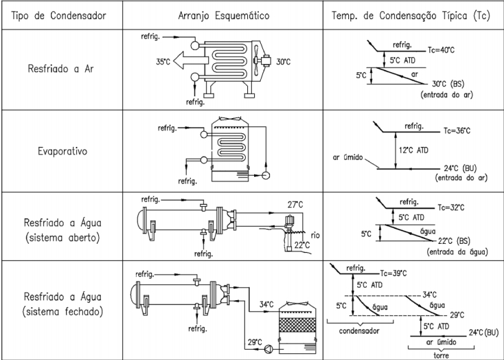 Condensadores são os elementos do sistema de refrigeração que têm a função de transformar o gás quente, que é descarregado do compressor a alta pressão, em líquido. Para isso, rejeita o calor contido no fluido refrigerante para alguma fonte de resfriamento.