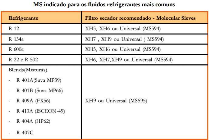 FILTRO SECADOR: exerce duas funções importantes: A primeira é reter partículas sólidas que em circulação no circuito, podem ocasionar obstrução ou danos à partes mecânicas do compressor. A segunda é absorver totalmente a umidade residual do circuito que porventura não tenha sido removida pelo processo de vácuo, evitando danos ao sistema como: formação de ácidos, corrosão, aumento das pressões e obstrução do tubo capilar por congelamento da umidade.