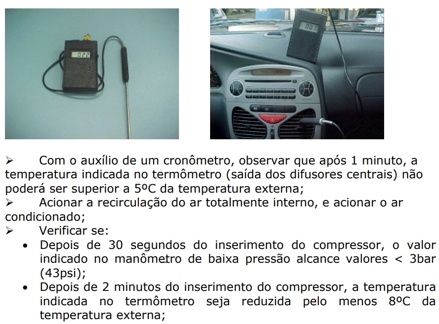 OBS.: É importante que o teste seja efetuado em ambiente coberto sem a exposição direta do sol sobre o veículo, e a temperatura externa esteja variando entre 18ºC e 30ºC;
