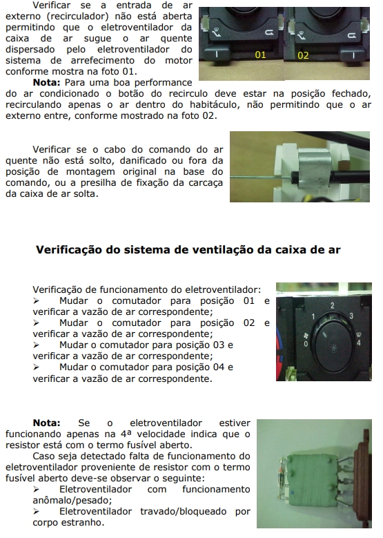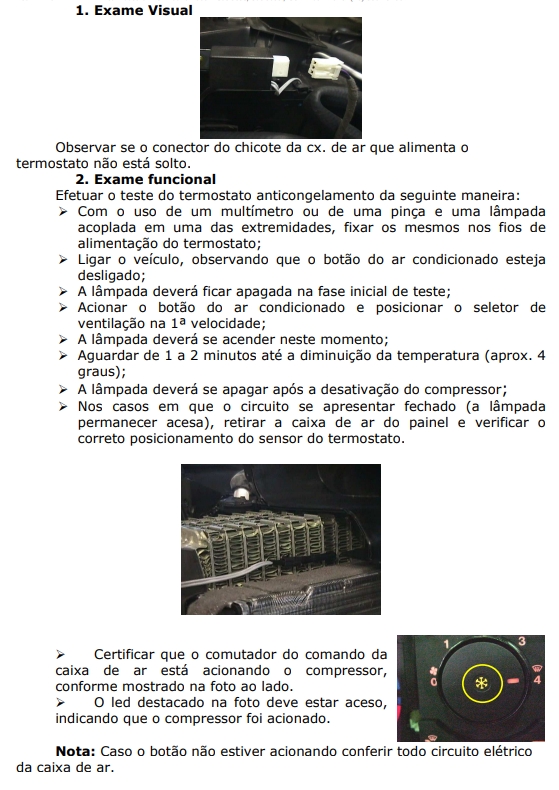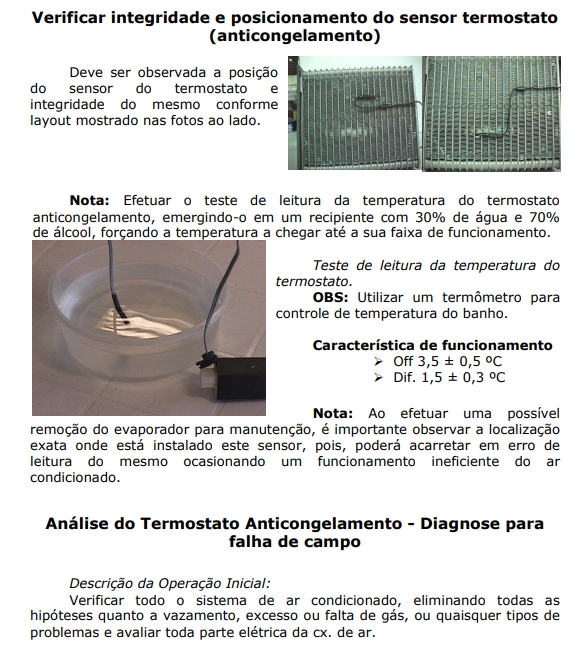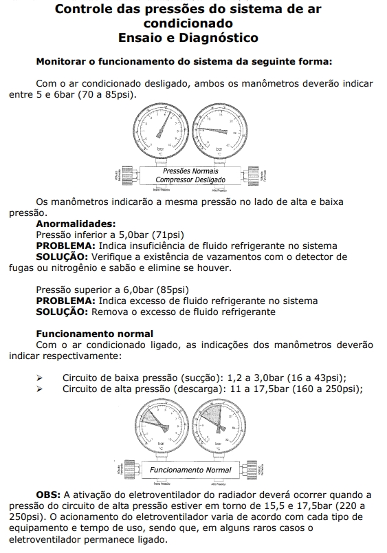 Tem como objetivo diagnosticar no veículo, possíveis reclamações referentes ao mau funcionamento ou baixa eficiência do sistema de ar condicionado. Portanto para a diagnose, devesse seguir as etapas abaixo: