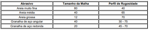 3. Tipo e granulometria do material abrasivo, em função dos perfis de rugosidade a serem obtidos com o jateamento.