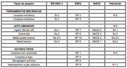 Para a perfeita preparação de superfícies de aço, foram estabelecidas normas internacionais entre as quais se destacam as seguintes: