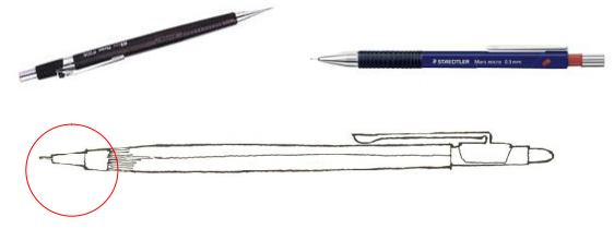• Atualmente é mais prático o uso de lapiseira. Recomenda-se a de 0,5mm e a de 0,9mm, com grafite HB.