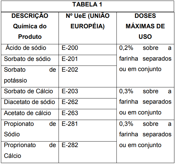 Na Espanha e Itália está autorizado um máximo de 3g / Kg de farinha em outras regulamentações como a francesa permitem 5g / Kg de farinha. Para que sua efetividade seja mais notável a massa deve ter valores de Ph de 5,3 e para que isso seja possível tem que colocar ácido láctico e ácido cítrico na proporção de 1 a 2g/Kg de farinha.