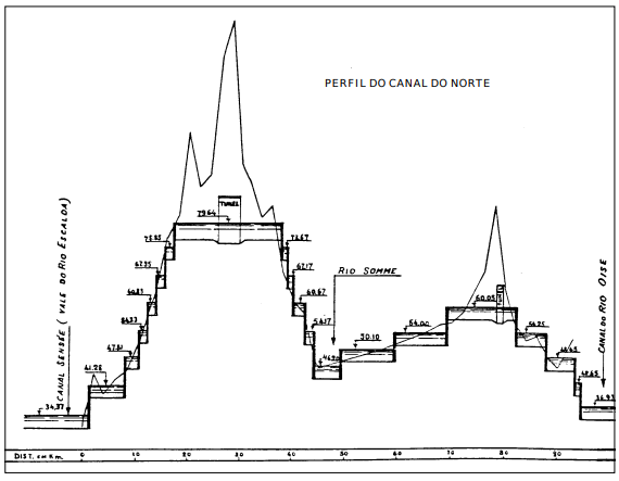 Construindo-se uma série de barragens com eclusas (ou outro meio de transposição de desnível) ao longo de um curso d’água, teremos um rio canalizado. O termo “canalizado”, em nossa língua, pode dar uma impressão falsa, de confusão com outros tipos de obras nos rios ou riachos, geralmente feitas quando estes atravessam cidades. Seria melhor, talvez, que os chamássemos de rios represados (figura 2). Se as barragens são móveis, o rio volta a ser de corrente livre durante as cheias. Com a canalização, desaparecem as limitações de vazão mínima e declividade.