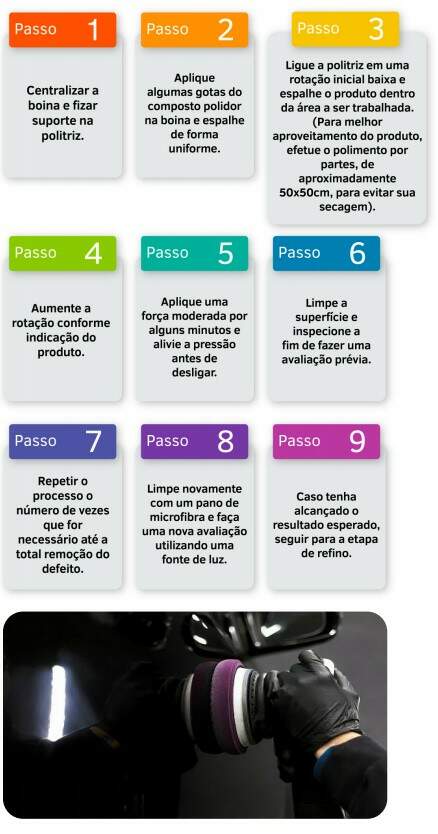 O polimento também serve como base para aplicação de ceras, vitrificadores e qualquer outro tipo de proteção