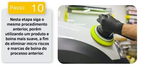 O refino é efetuado somente nos casos em que o profissional busca por um melhor resultado final no polimento. Para realizar essa etapa é necessário a utilização de um polidor para refino e uma boina macia.