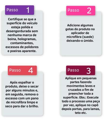 É aplicado também, para realçar o brilho do acabamento, proteger superfícies com pintura original e restaurar o brilho em pinturas opacas.
