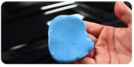 1° - Divida a massa abrasiva em duas partes iguais e molde uma das partes em sua mão para que cubra os quatro dedos.