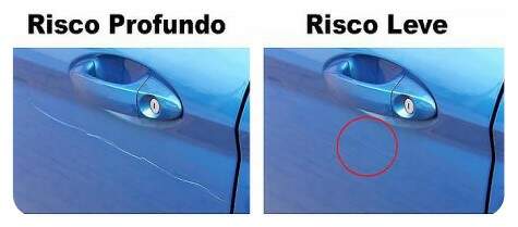 Riscos: mesmo em carros novos, não é difícil encontrar pequenos riscos superficiais causados principalmente por pedrinhas e lavagens. Já os riscos profundos que ultrapassaram o verniz removendo tinta, a única forma de resolver é fazendo uma repintura.