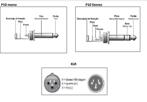 Módulo de entrada: São todos os sinais que entram em seus canais, Line (para instrumentos) ou MIC para microfones.