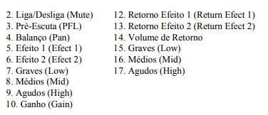 Numa mesa básica, temos os seguintes itens individuais por canal (1ª coluna) e gerais (2ª coluna):