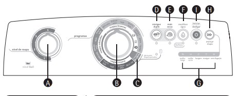IMPORTANTE Durante a lavagem o seletor permanece parado no programa escolhido. Você pode acompanhar a evolução da lavagem através das luzes que indicam as etapas de lavagem.