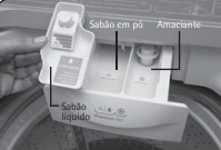 IMPORTANTE Não coloque sabão em pó ou alvejante em pó no compartimento para sabão líquido, pois eles não serão dispensados. Sempre retire o compartimento para líquido quando usar sabão em pó.