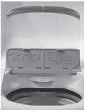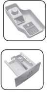 3. Verifique os acessórios: o Manual do Consumidor e a relação da Rede de Serviços Consul. 4. Retire o compartimento para sabão líquido que se encontra dentro da gaveta do dispenser. Leia as instruções antes de utilizá-lo. 5. Remova a etiqueta de eficiência energética que vem fixada na frente do gabinete.