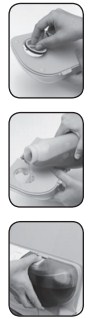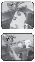 2. Encha o reservatório com água e acione o botão da parte superior para retirar a água com os resíduos de produto de limpeza. Repita a operação diversas vezes, deixando a água passar por dentro do reservatório até sair limpa, sem resíduos de sabão líquido ou amaciante. Após a lavagem em água corrente, enxugue os reservatórios com um pano macio e deixe secar à sombra.