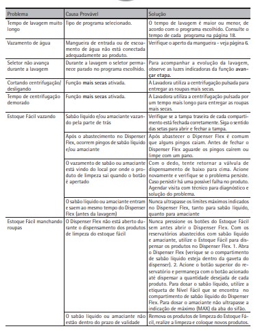 ATENÇÃO Se não desejar limpar sua Lavadora quando o alerta acender, você pode desativá-lo posicionando o seletor no programa limpeza lavadora e pressionando por 3 segundos a função avançar etapa. O alerta irá apagar e acenderá novamente após 48 ciclos.