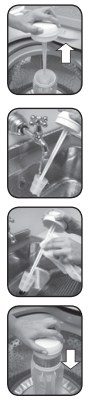 3. Feche a tampa e volte os reservatórios para a Lavadora, encaixando-os primeiro pela parte de baixo e depois a parte superior.