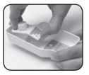 Realize a limpeza dos reservatórios do Estoque Fácil sempre que desejar trocar o produto (sabão líquido ou amaciante) ou se for passar um período sem utilizá-lo. 1. Abra a tampa da parte traseira e lave o reservatório em água corrente.