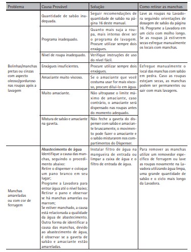Usar sabão ou amaciante em excesso aumenta a formação de sujeira na Lavadora. Sempre siga as recomendações de uso e dosagem na página 16.