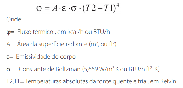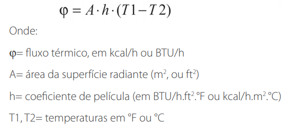 Para exemplificar, imaginemos a energia do sol que penetra por uma janela, aquece o piso, o qual irá irradiar seu calor para o ar ambiente, que se encontra a temperatura inferior a do piso. O fluxo térmico (taxa de calor transferido) é dado pela equação a seguir: