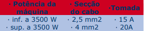 - Uma cabo de secção 2,5 mm2,