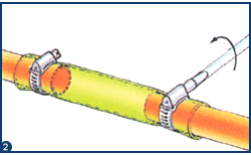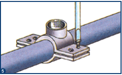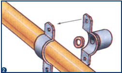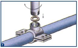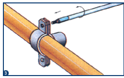 · Montar a braçadeira apertando os parafusos que unem as duas peças uma contra a outra, ficando o tubo mo meio