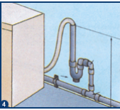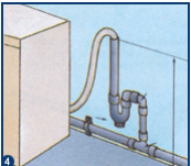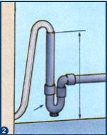 Se a canalização de evacuação das águas estiver demasiado próxima do solo, fazer uma ligação em S com 2 joelhos a 90º macho fêmea para ligar o sifão à canalização.