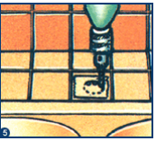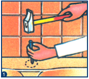 Marcar o seu centro aproximado.· Utilizando uma broca para alvenaria com ponta de carbono Æ 8 mm ou utilizando uma chave de fendas philips como um punção, descolar a pastilha batendo delicadamente com um martelo. A pastilha pré-cortada deverá saltar sem dificuldade.