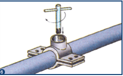 Utilizando a peça de perfuração fornecida (trépano),fazer um furo na canalização e em seguida desapertar e remover o trépano.