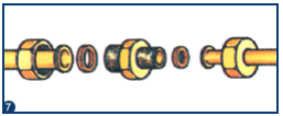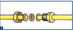 - Deslizar um casquilho fêmea/fêmea sobre cada extremidade da canalização.