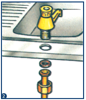 - Proceder como para a bacia em aço inox mas fazer os furos com uma broca com ponta de carbono e colando uma fita adesiva sobre a área a perfurar para evitar danificar os bordos do orifício .