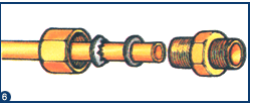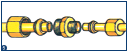 Nunca ligar por soldadura os tubos de um aparelho que tenha discos de cerâmica.União com gola mandrilada.As ligações são feitas por uniões roscadas (macho e fêmea). Os dois elementos roscados são enfiados em cada extremidade dos tubos a unir e são em seguida apertados um ao outro.