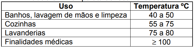 Tabela: 1.1 Temperaturas recomendadas.