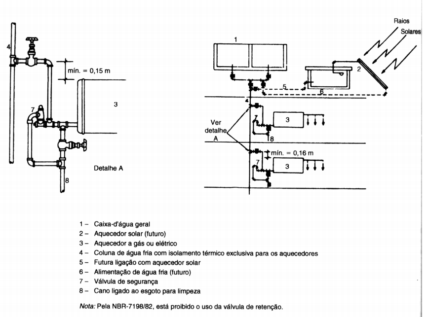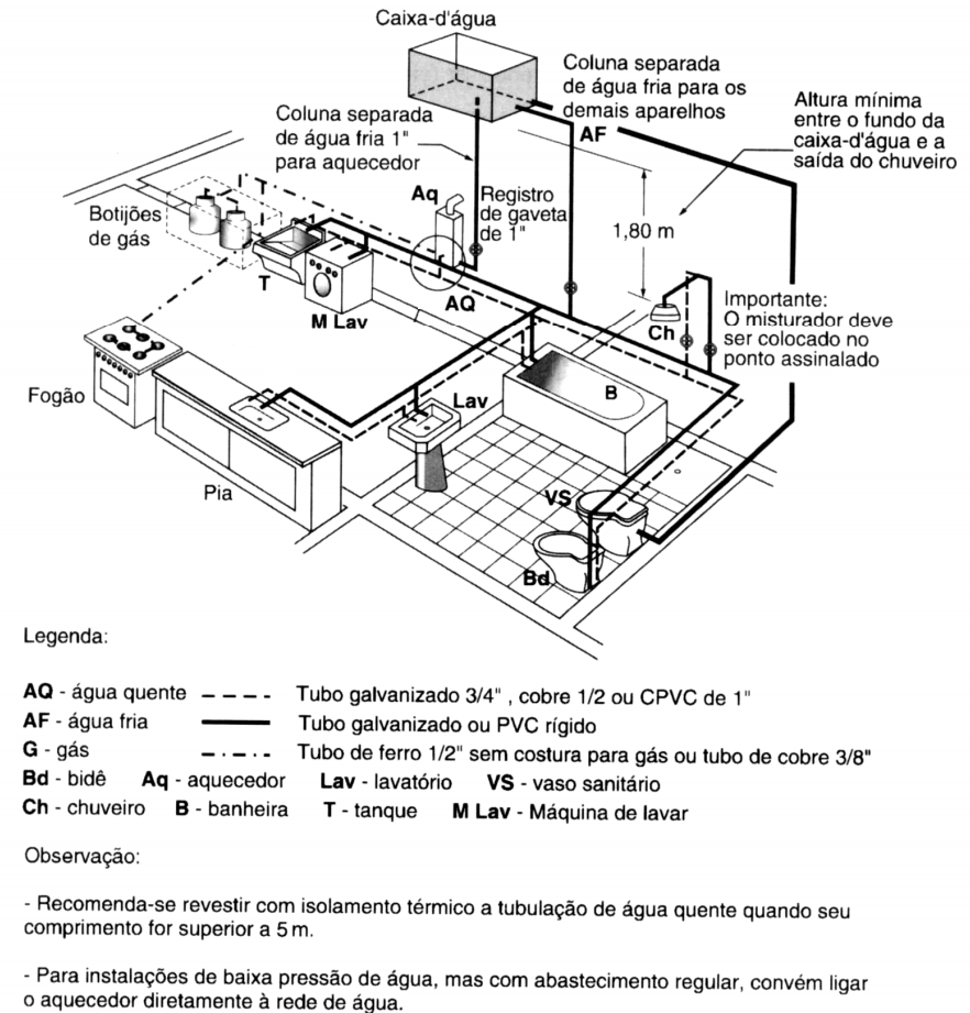Isolamento térmico:dispositivo utilizado para reduzir as perdas de calor ao longo da tubulação condutora de água quente.Misturador:
