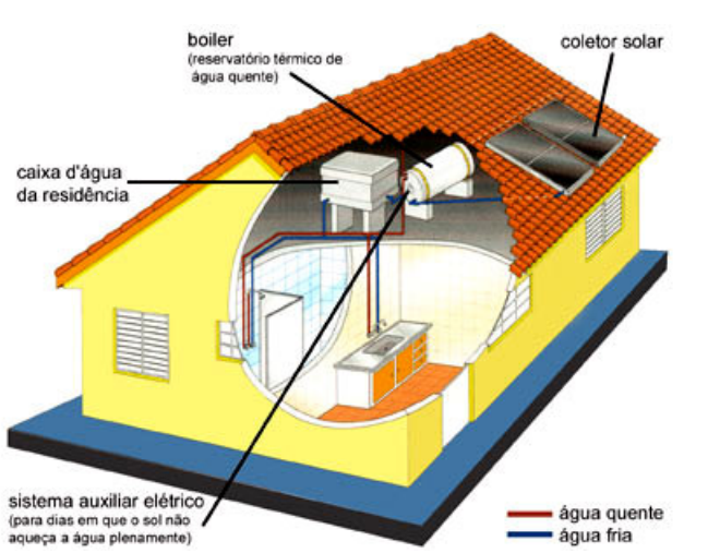 Figura 1.7:Esquema típico de instalação de aquecimento solar.